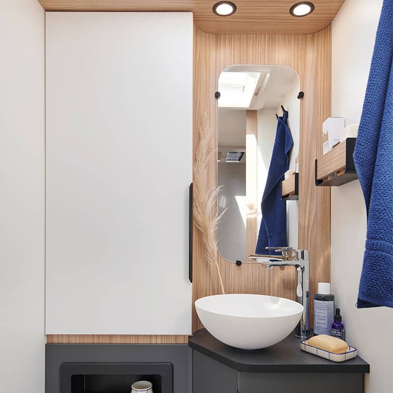 - Les salles de bains des véhicules compacts restent très astucieuses.