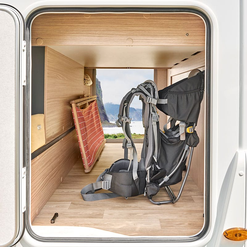 – Éclairage, rails et prise 230 V en soute.