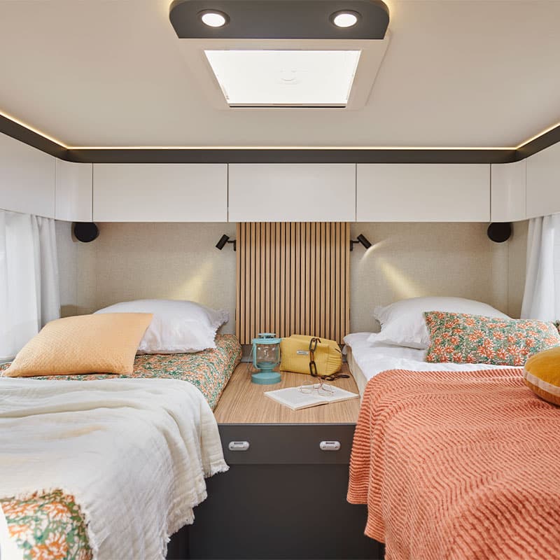 La cellule de nos camping-cars profilés neufs a été pensée pour faciliter la circulation : vastes salons, salles de bains spacieuses et chambres confortables. Faites le choix du confort.