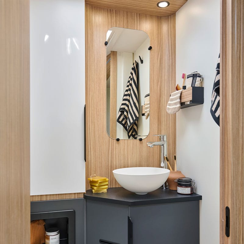 - Des salles de bains astucieuses dans les véhicules compacts.