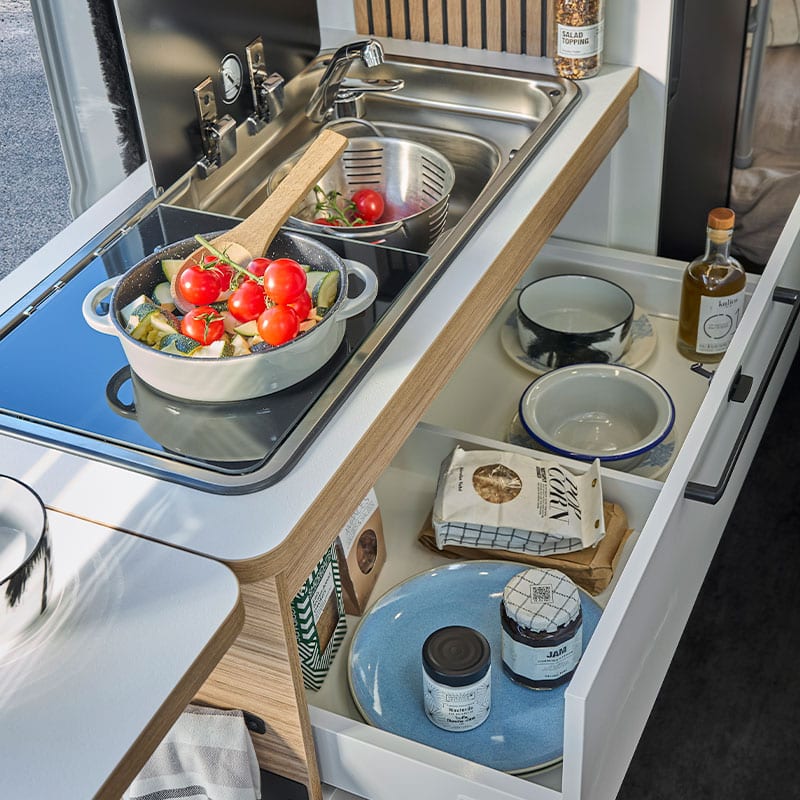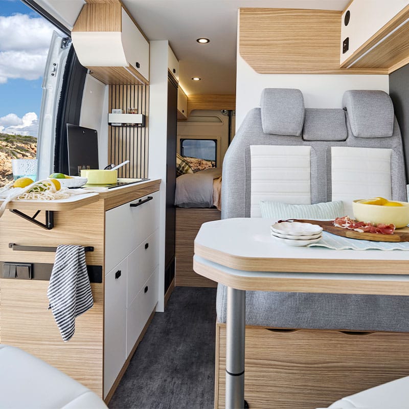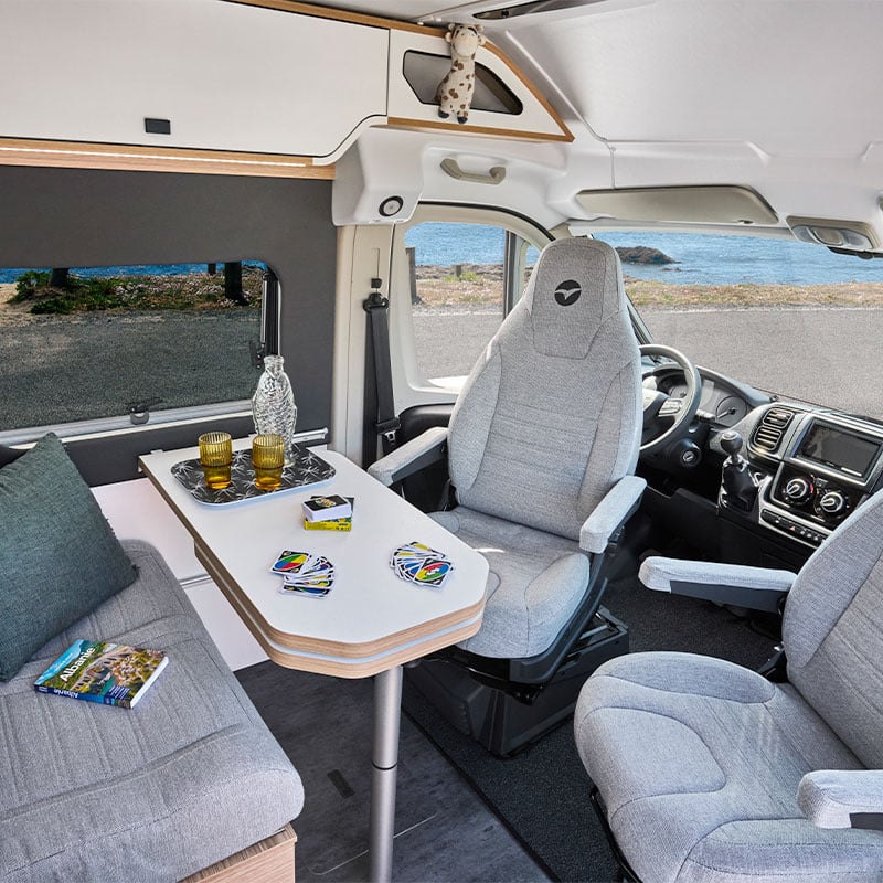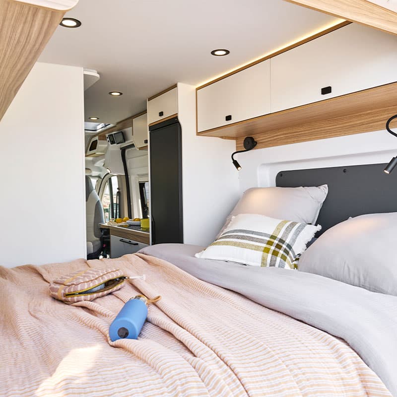 En 2026, un fourgon à l’implantation unique fait son entrée dans la gamme : le V630S. Un véhicule familial par excellence, intégrant à l’arrière des lits superposés modulables qui s’adaptent à toutes les envies et à tous les modes de voyage.