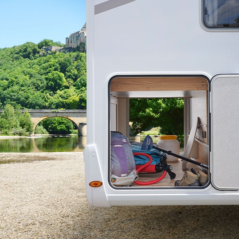 - une prise gaz accessible directement depuis l’extérieur : profitez de la cuisine en plein air en toute sécurité ! Préparez-vous de bons petits plats au réchaud, à la plancha ou au barbecue à gaz en utilisant directement la réserve du camping-car, sans bouteilles supplémentaires ni installation compliquée.