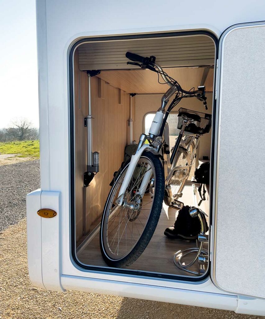- Une soute réglable en hauteur électriquement sous le lit central (uniquement sur le modèle P720FC) pour gagner encore plus de volume de rangement.