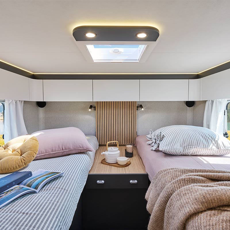 - Un store banne avec LED intégrées, pour un confort optimal à l’étape.