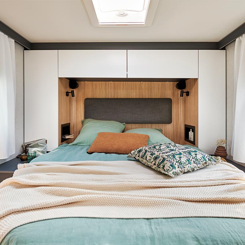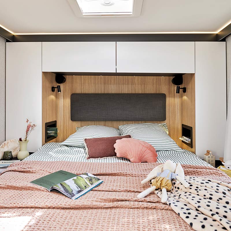 - Une soute réglable en hauteur électriquement sous le lit central (uniquement sur le modèle G720FC) pour gagner encore plus de volume de rangement.-