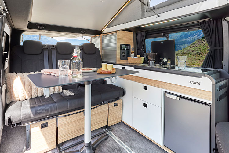 Lorsque vient le temps de se reposer, il suffit de reculer la banquette pour créer un agréable espace de vie. Imaginez des soirées conviviales où vous pourrez vous détendre en profitant de l’ambiance chaleureuse de votre van aménagé.